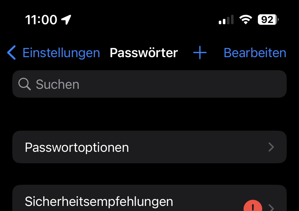 Begeben Sie sich in die Einstellungen auf Ihrem Gerät und öffnen Sie dort den Punkt "Passwörter".