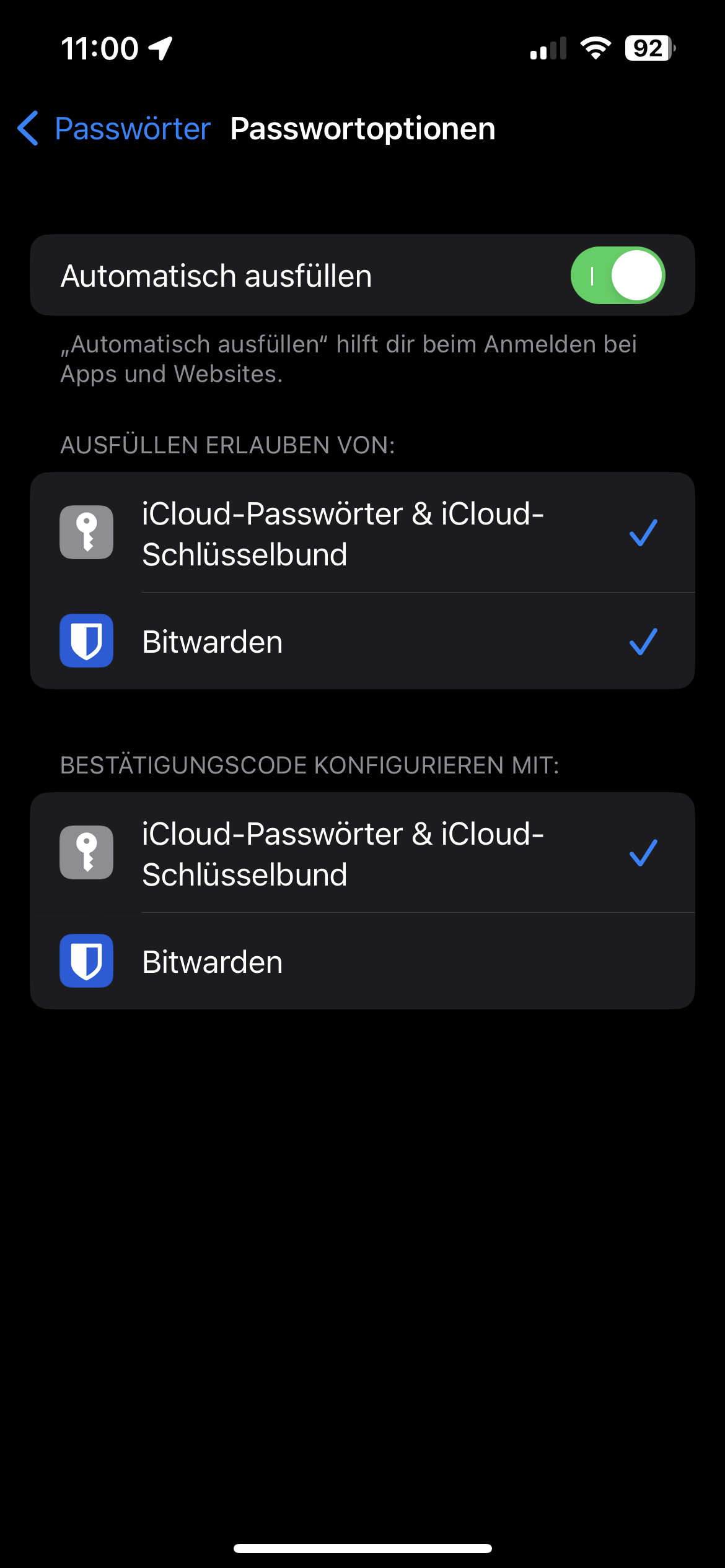 Aktivieren Sie hier unter dem Punkt "Ausfüllen erlauben von:" den Dienst "Bitwarden".